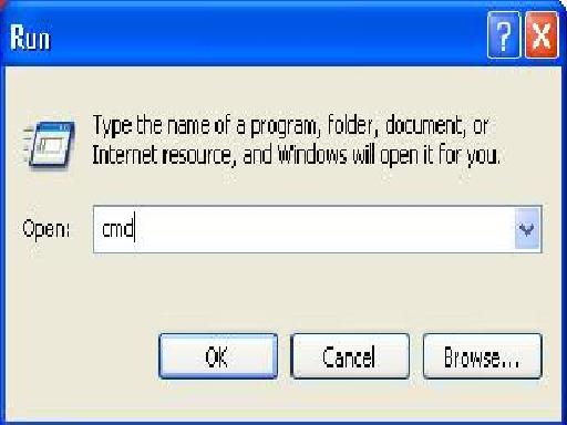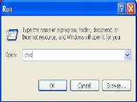 Membuka Command Prompt dari Start – All Program – Accessories – Command Prompt atau dari Start – Run, ketikkan ‘cmd’ lalu Enter.